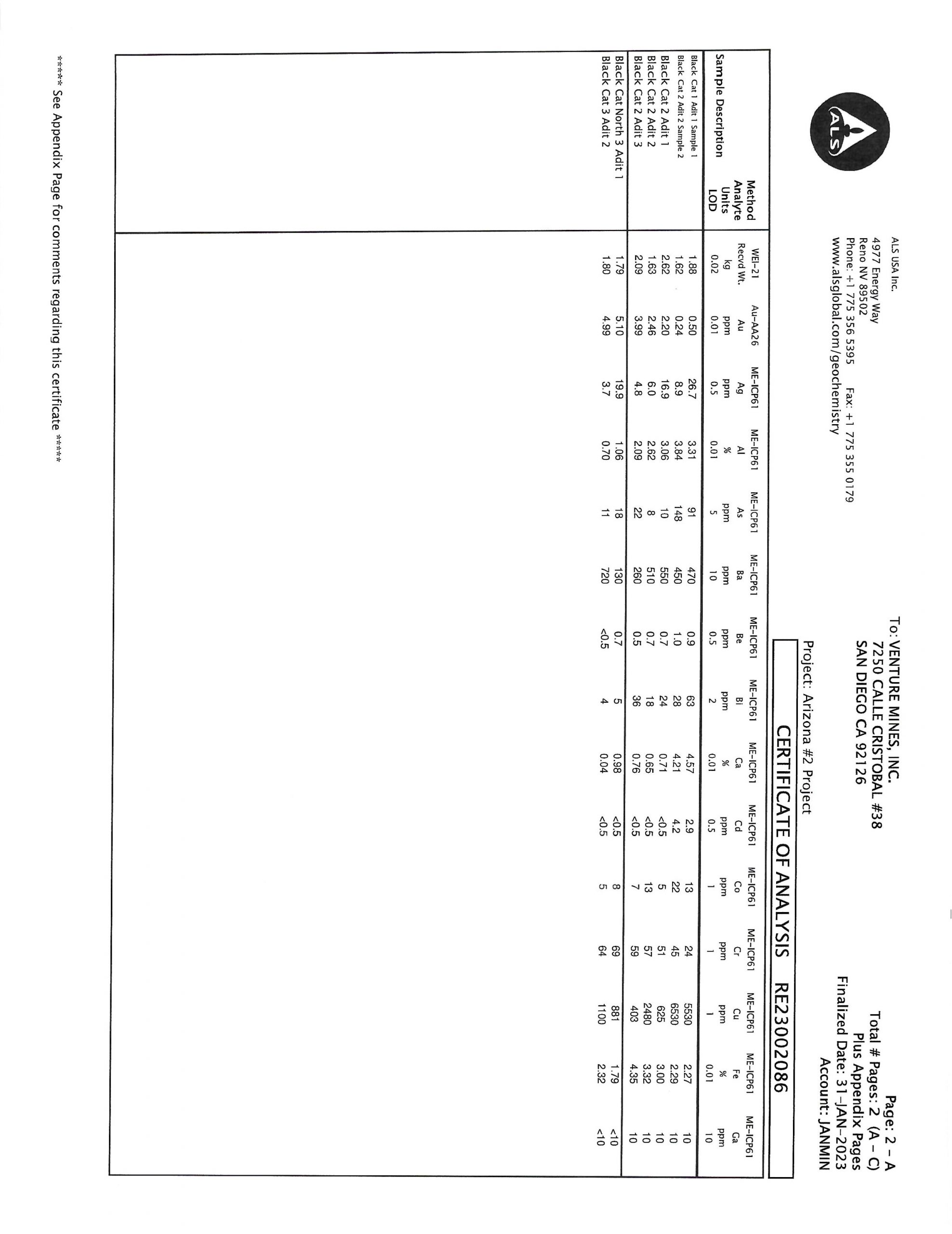 The Black Cat (BCN 1-3) mining claims consists of three (3) unpatented lode claims covering 61.98 acres on federal land managed by the U.S. Bureau of Land Management. The claims cover a former producing gold-silver mine located in the Ellsworth Mining District in La Paz County, Arizona.