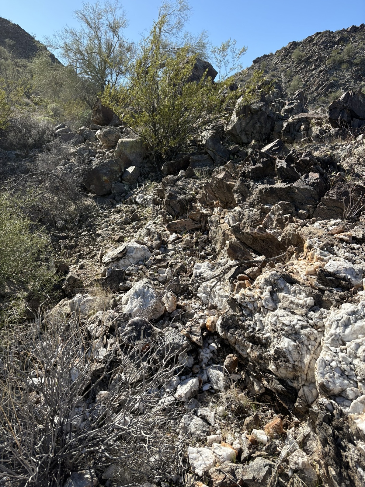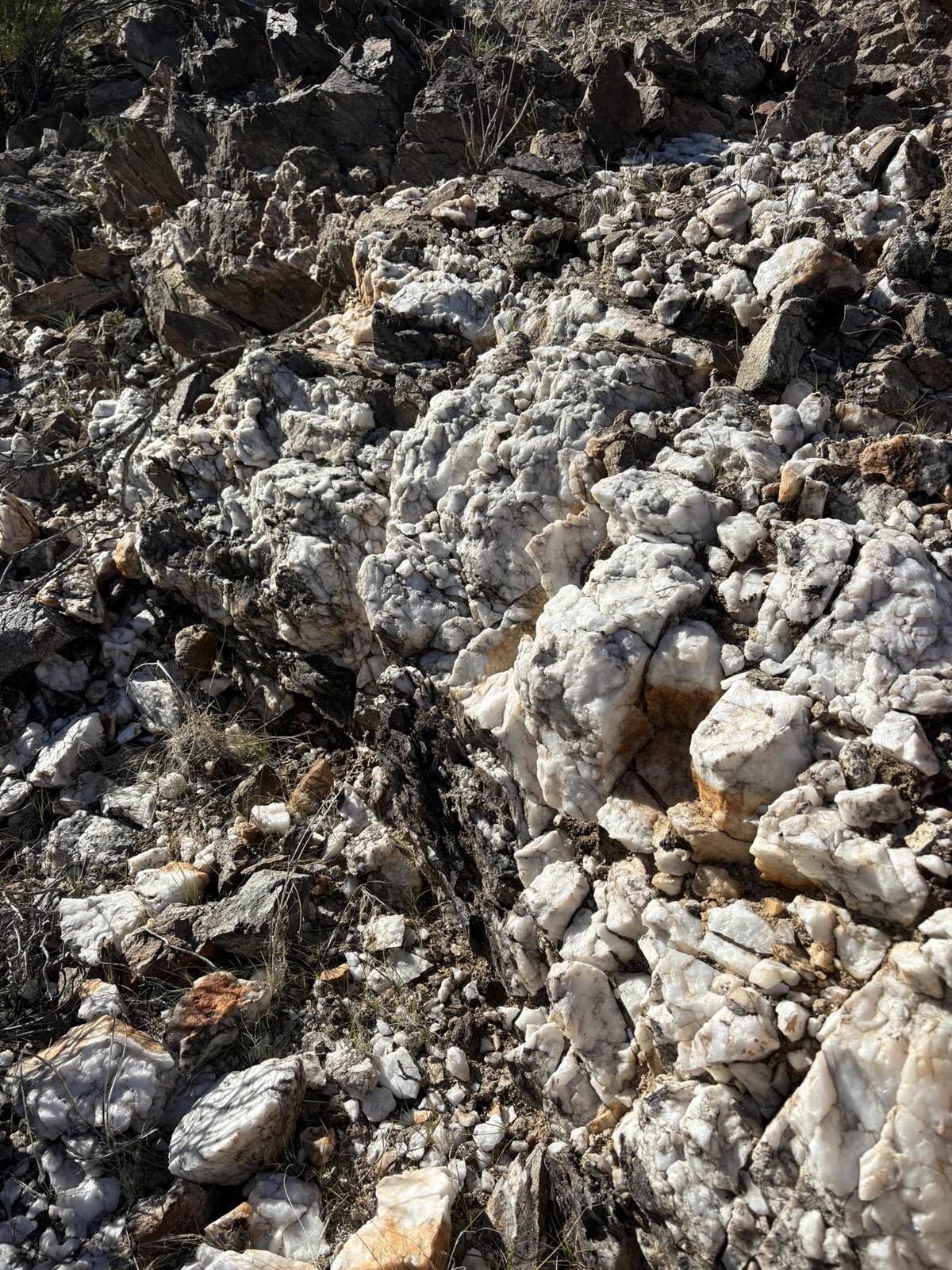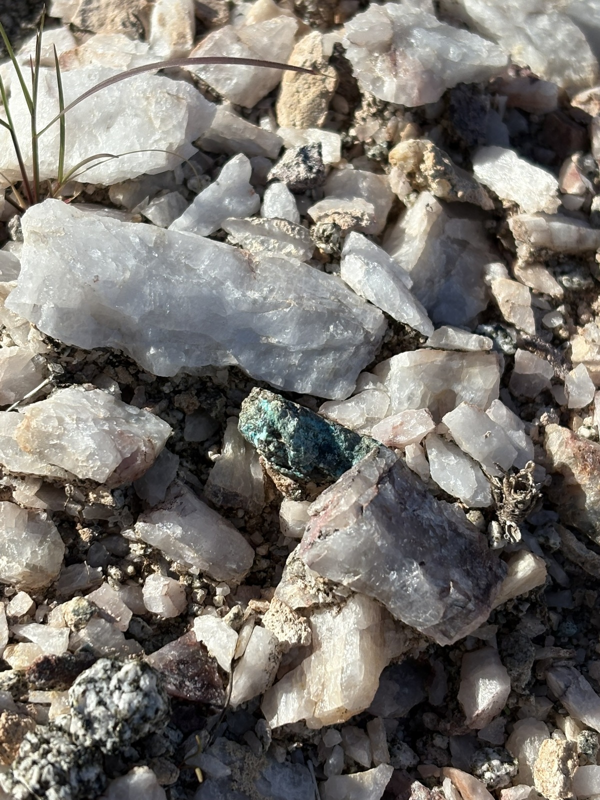 There was abundant quartz and some veins of chrysocolla (see pictures).