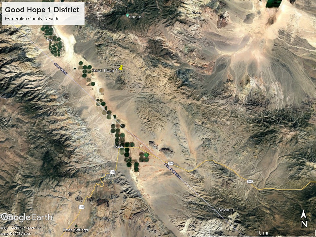 The Good Hope 1 mining claim consists of one (1) unpatented lode claim covering 20.66 acres on federal land managed by the U.S. Bureau of Land Management.  The claims cover a former producing gold-silver mine in Esmeralda County, Nevada