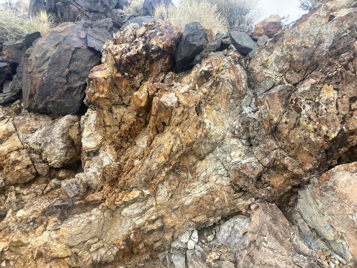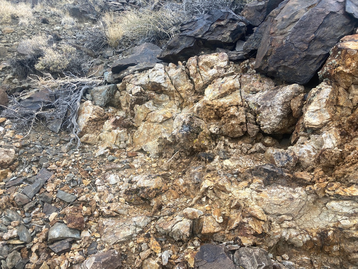 The old workings expose a north-south vein structure on a parallel fault to the main fault to the east.  This structure could be over 1 mile long.