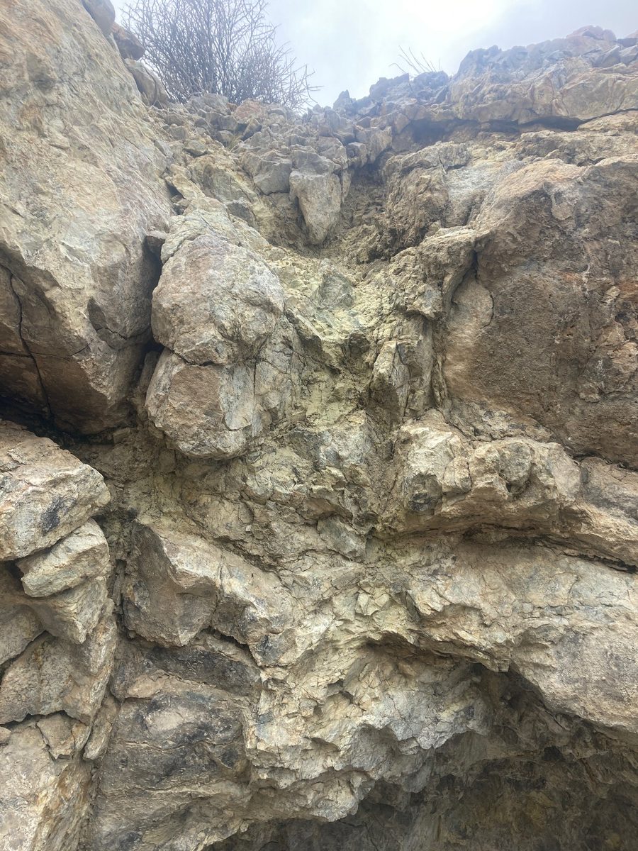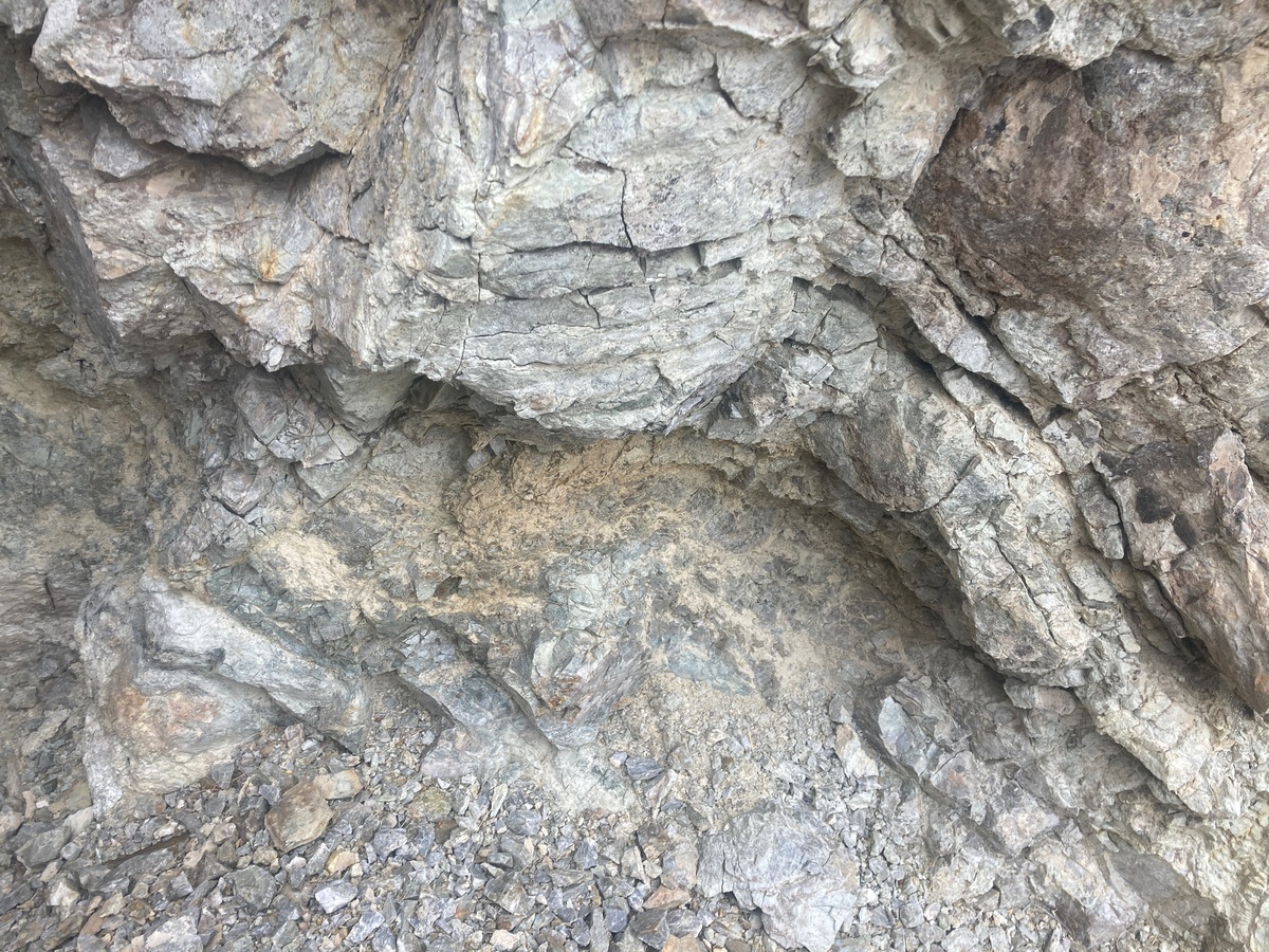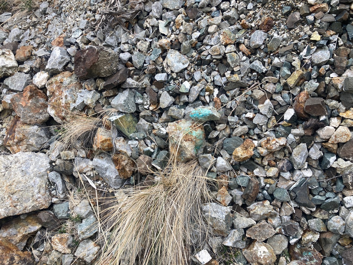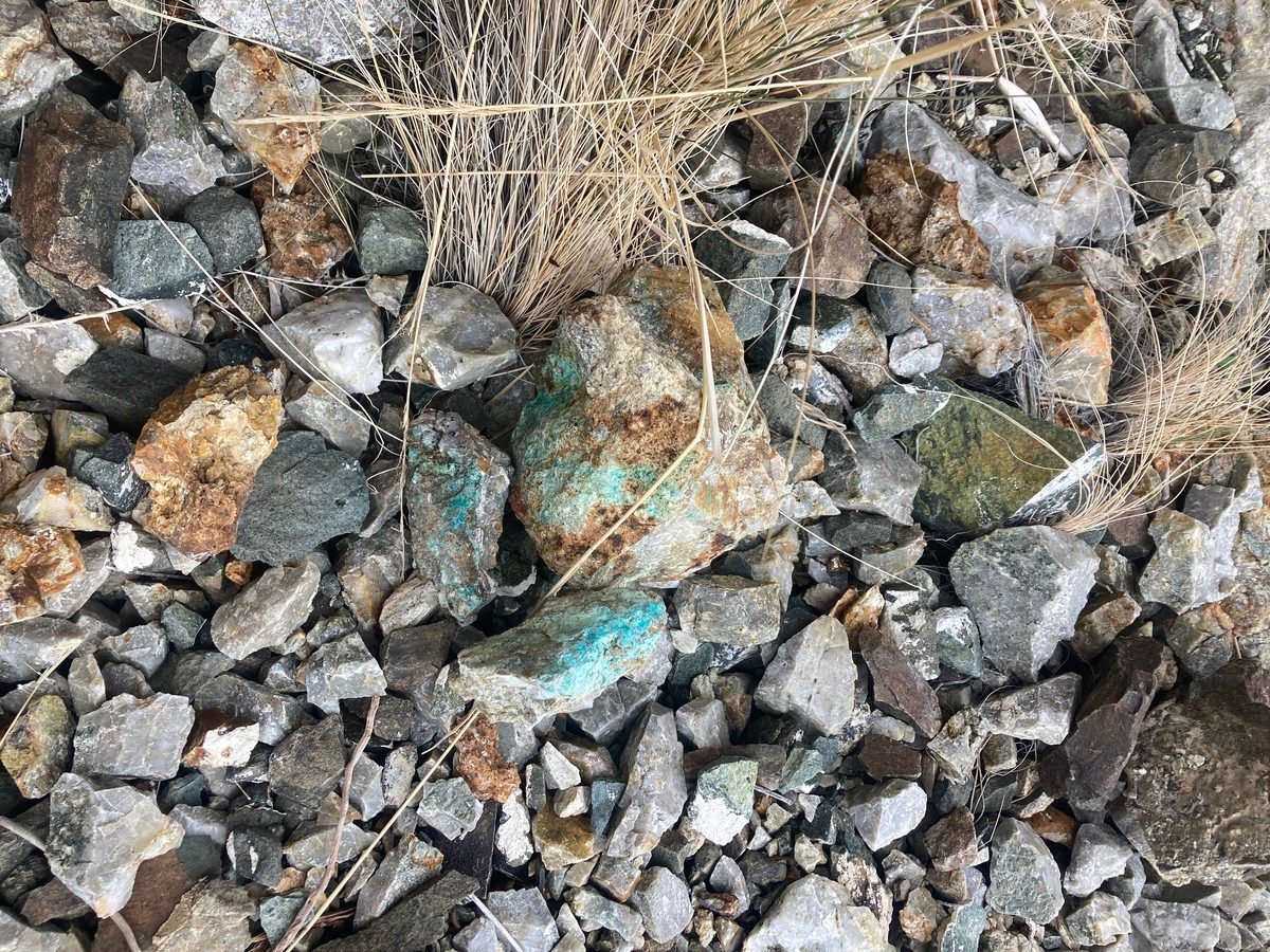 • The green-blue colors usually come from secondary copper minerals formed during weathering (common examples are malachite, azurite, or chrysocolla).