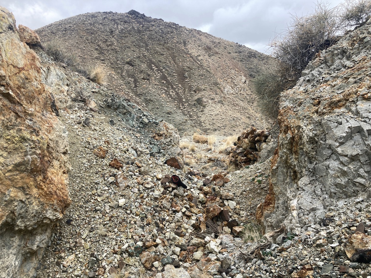Location and Access: From Dyer, California on the California-Nevada border – head south to 2 miles onto a county road (detailed gps coordinates and maps will be provided).  There is a navigable wash / jeep trail that heads directly to the mine – which is on the southwestern slopes of the Silver Peak Range.